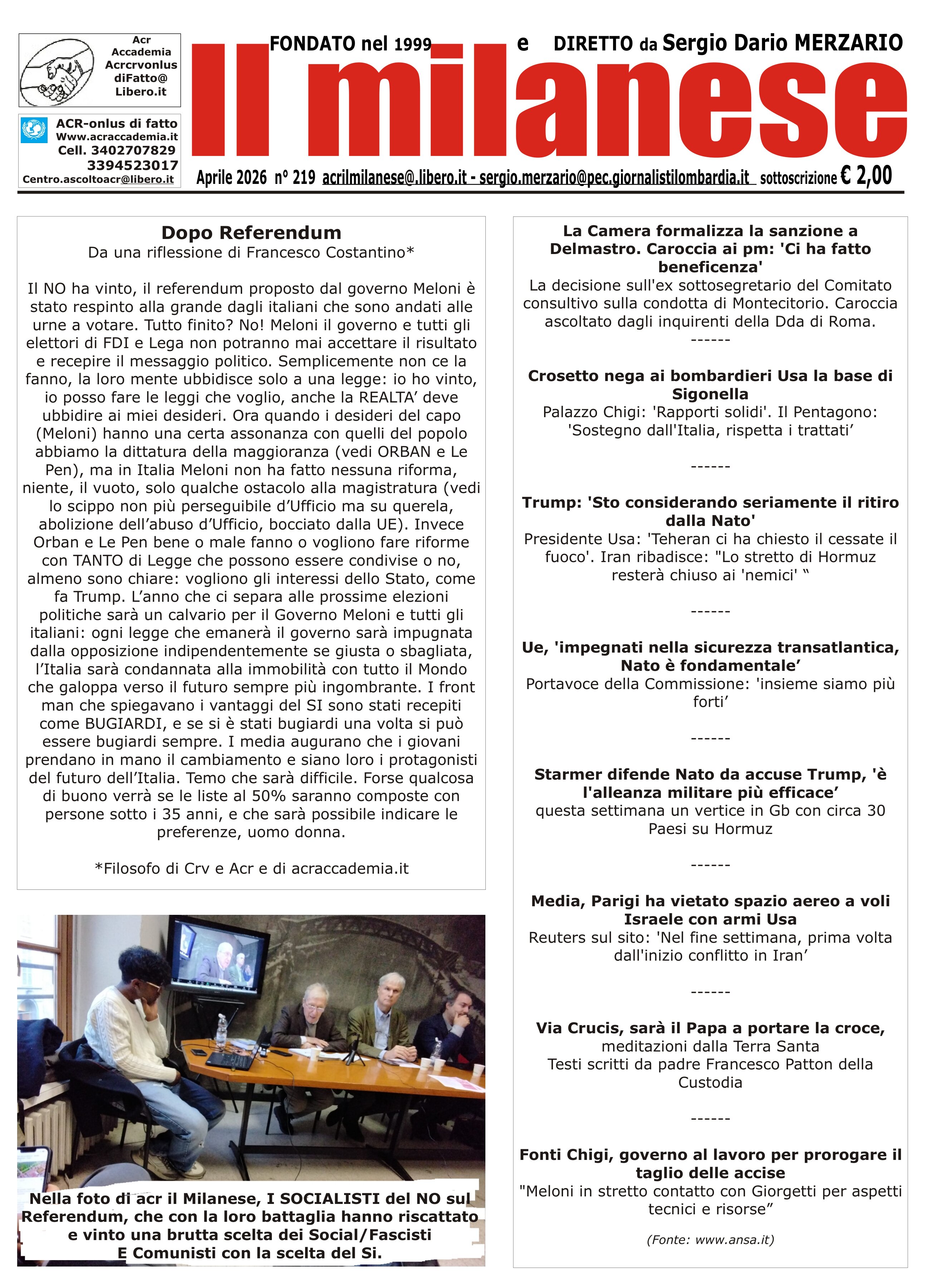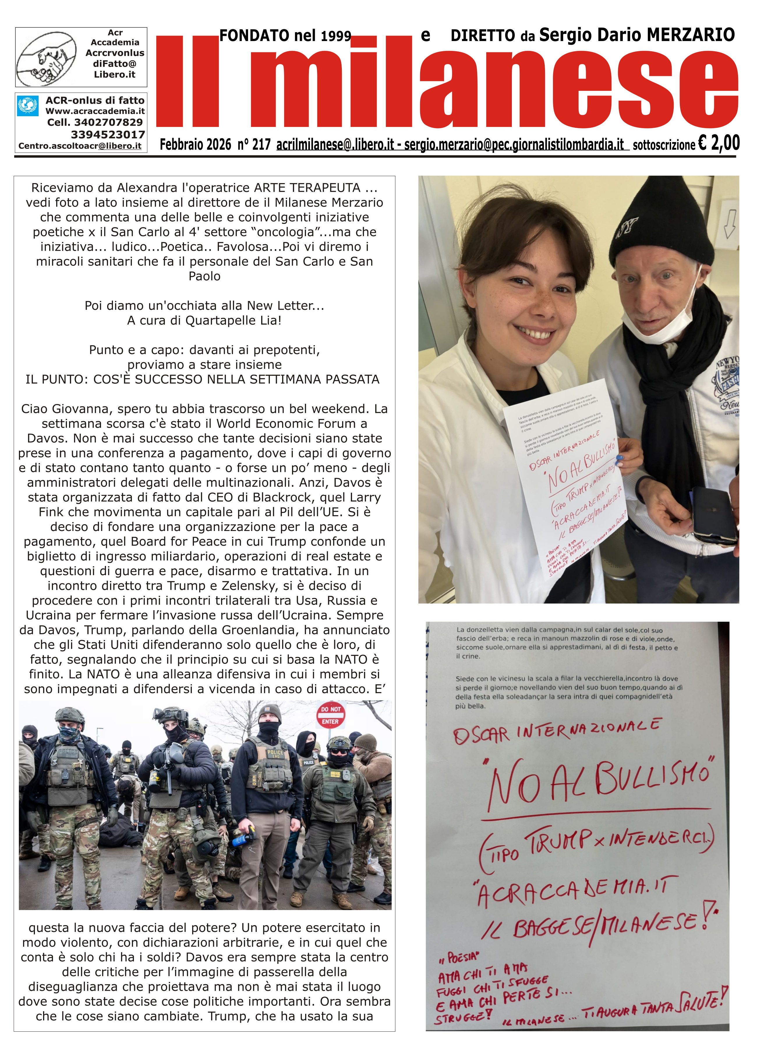 I giornali, il sito internet e i blog che sono di proprietą di Sergio Merzario vengono concessi in comodato d'uso gratuito all'acr per realizzare i progetti e le attivitą inerenti ai corsi e percorsi formativi senza ulteriori oneri salvo il rimborso spese sostenuto per pubblicarli e metterli in rete! Selezionare il giornale desiderato premendo il numero della pagina a fianco del nome della testata in uso all'ACR